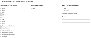 - Sélectionner les mémentos à cibler: les principaux, ceux dont vous êtes modérateur, vos favoris ou les autres. Vous pouvez gérer votre liste de mémentos favoris dans vos préférences.